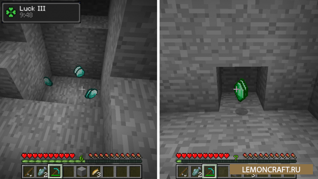 Мод на золотую рыбку Goldfish Myth дает вам возможность поймать настоящую золотую рыбку используя обычную удочку. Вы можете съесть данную рыбку и восстановить немного здоровья, но не спешите это делать. Отпустите данную рыбку и она подарит вам удачу. Ловите больше золотых рыбок и повышайте свой уровень удачи. Что же дает удача? Например, если вы убьете моба, с него вы получите больше вещей, чем при убийстве без удачи. Так же добывая руду вы получите в два раза больше ископаемых. Кроме этого удача приносит еще много полезных мелочей.